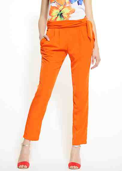Ik spotte deze broek bij Mango, voor wie liever een andere kleur kiest hij is er ook in het groen.