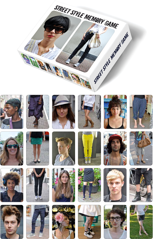 Het is een memory spel waarbij je de street style foto’s die door midden zijn geknipt weer bij elkaar moet zoeken.