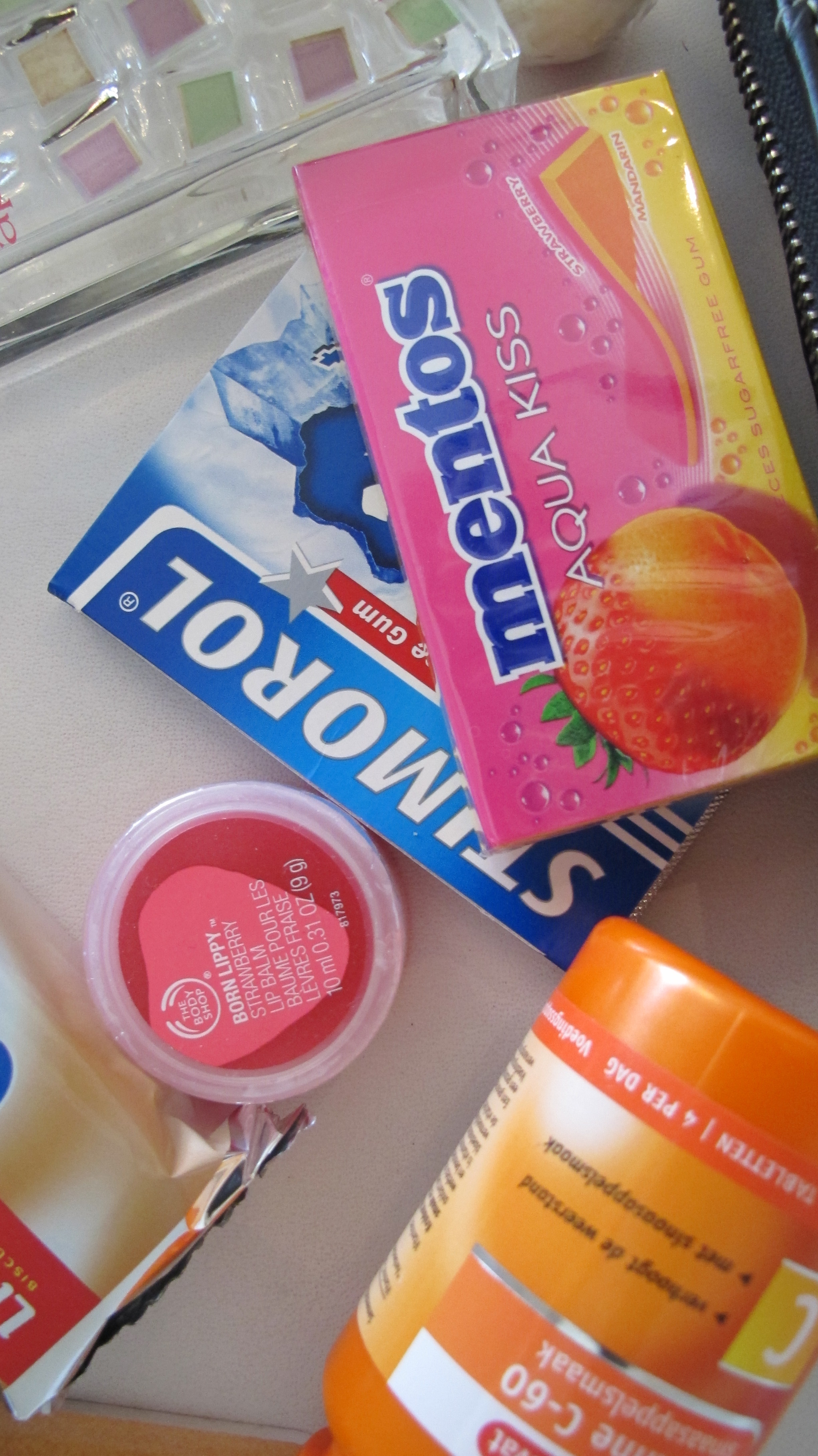 – Lolly: altijd heb ik lollies in mijn tas. Een caloriearm zoetje voor na de lunch:)