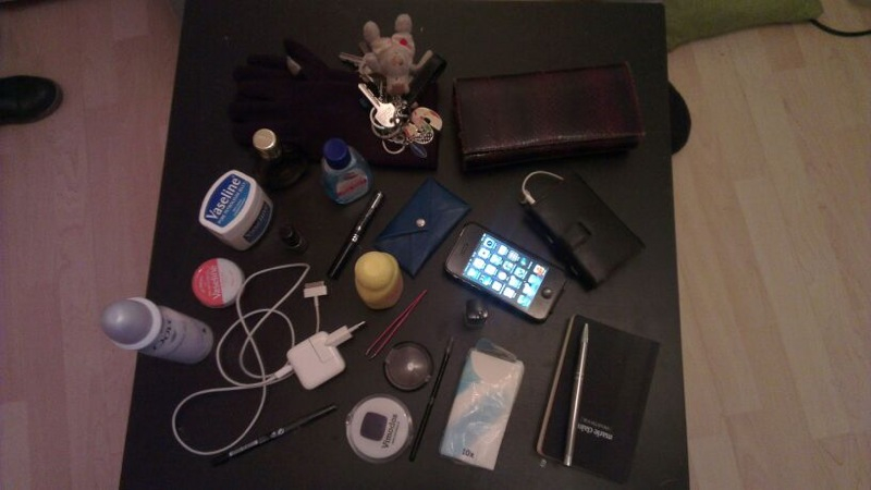 Mijn nagellak en ov chipkaart zitten ook altijd in mijn tas.