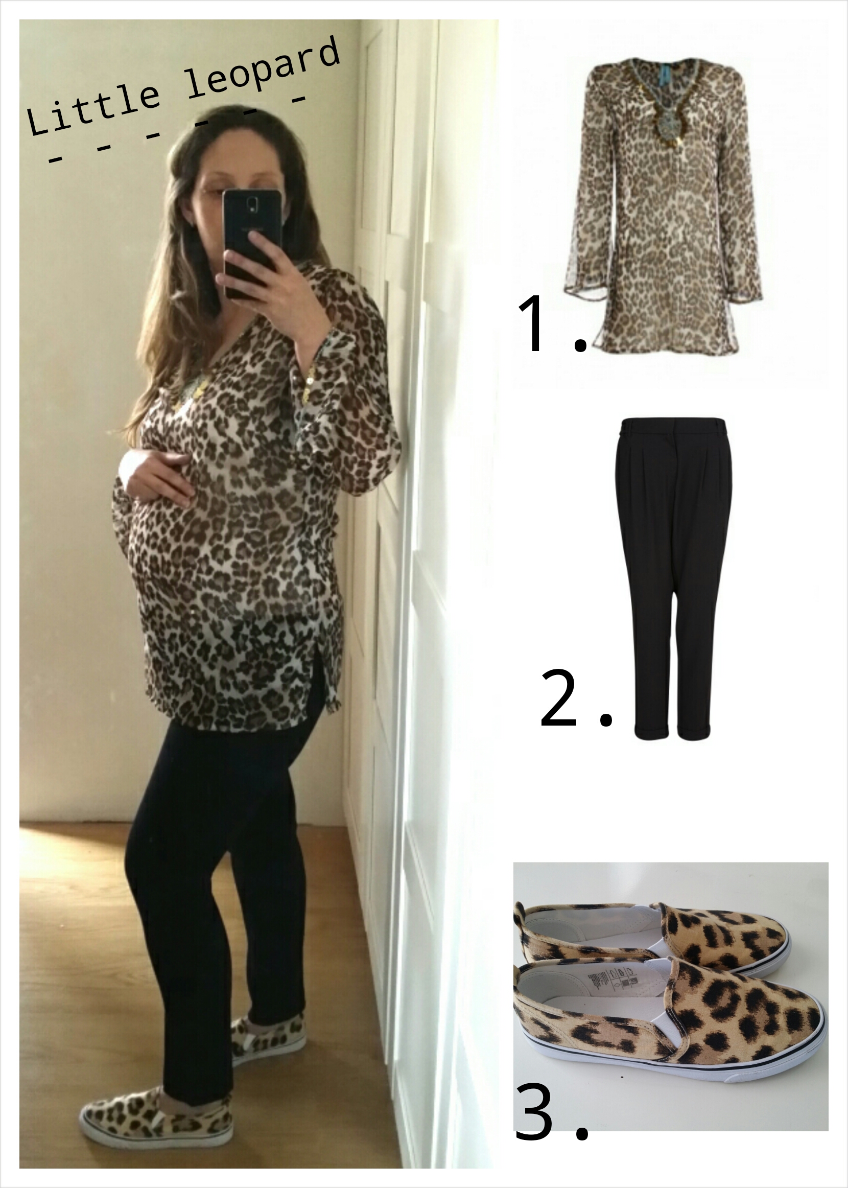 Almost 33 weeks pregnant and still not wearing maternity wear. The leopard tunic I’m wearing is from last summer. I normally wear it over my bikini but now I put a white sleeveless shirt underneath.