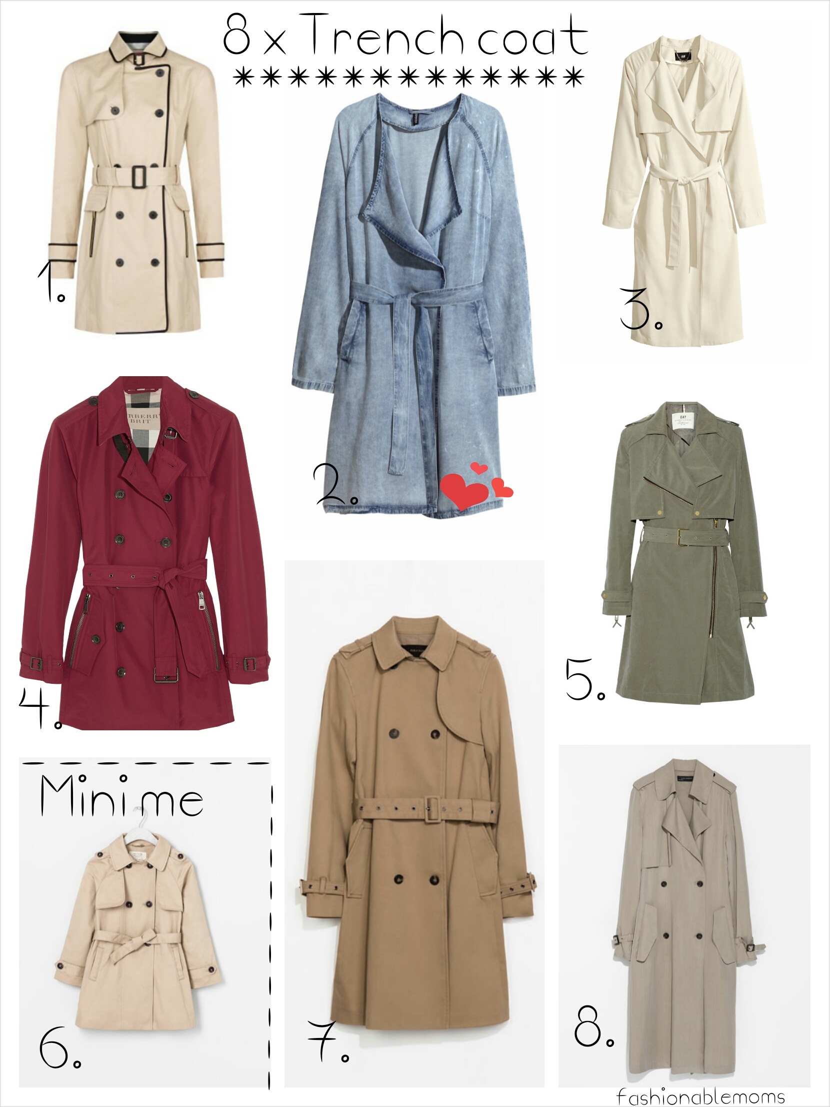 1. Mango 2. H&M 3. H&M 4. Burberry 5. DAY Birger et Mikkelsen  6. Zara kids 7. Zara 8. Zara