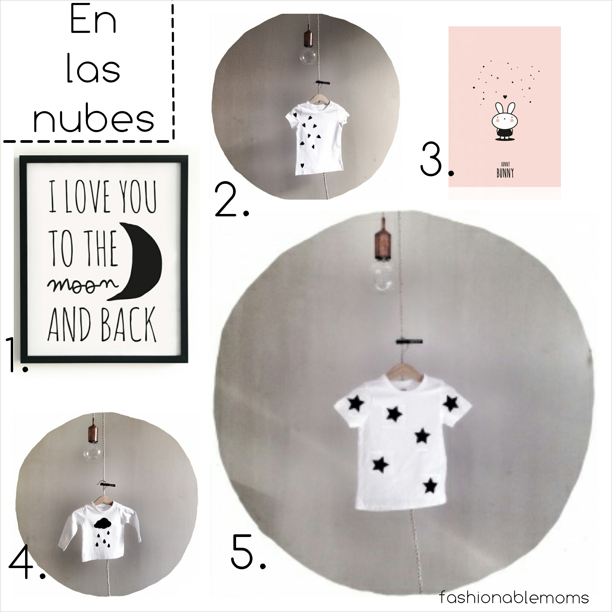 1. Poster 2. Heart short sleeve 3. Hunny bunny poster 4. Cloud long sleeve 5. Stars short sleeve