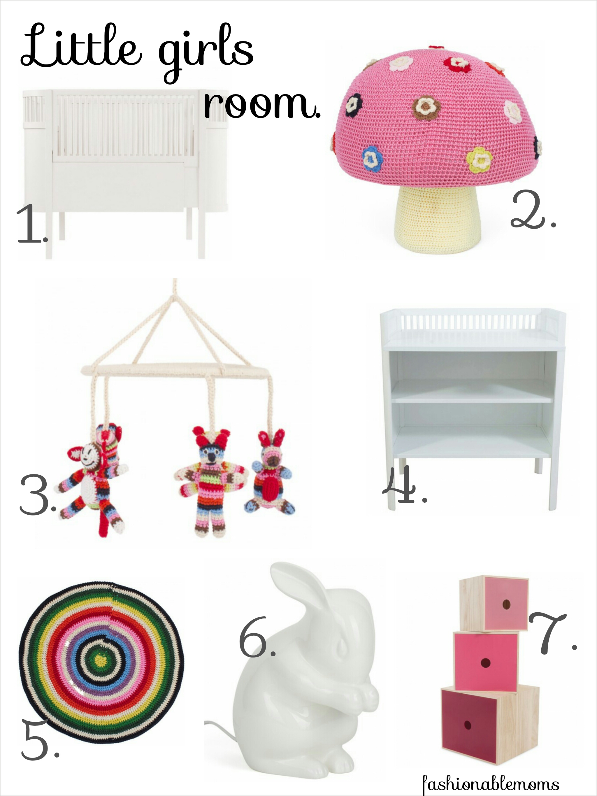 So I have a simple crib from ikea. All crochet stuff from Anne-Claire Petit I also find very nice, if I had a girl, I’d have bought this mushroom!