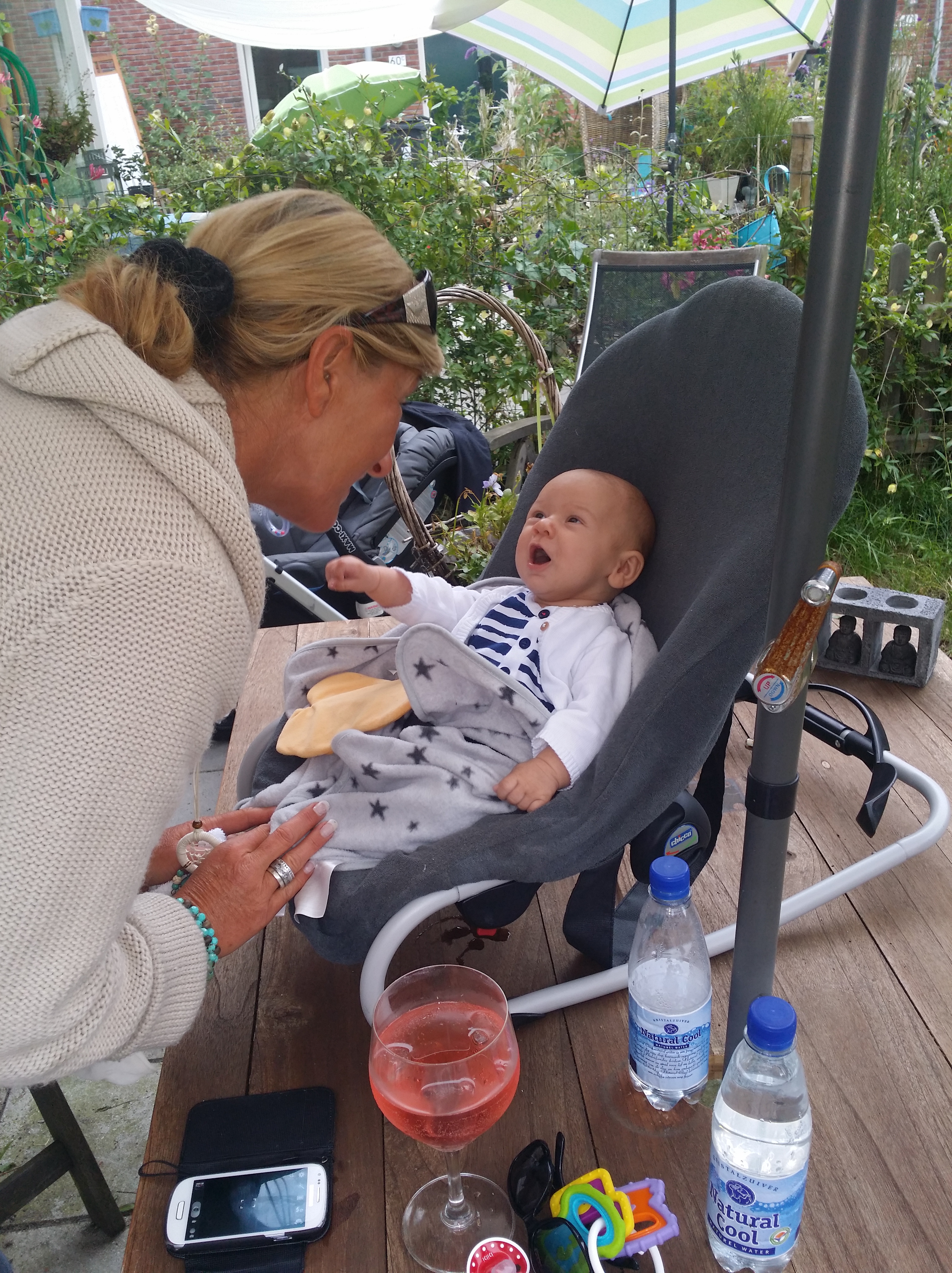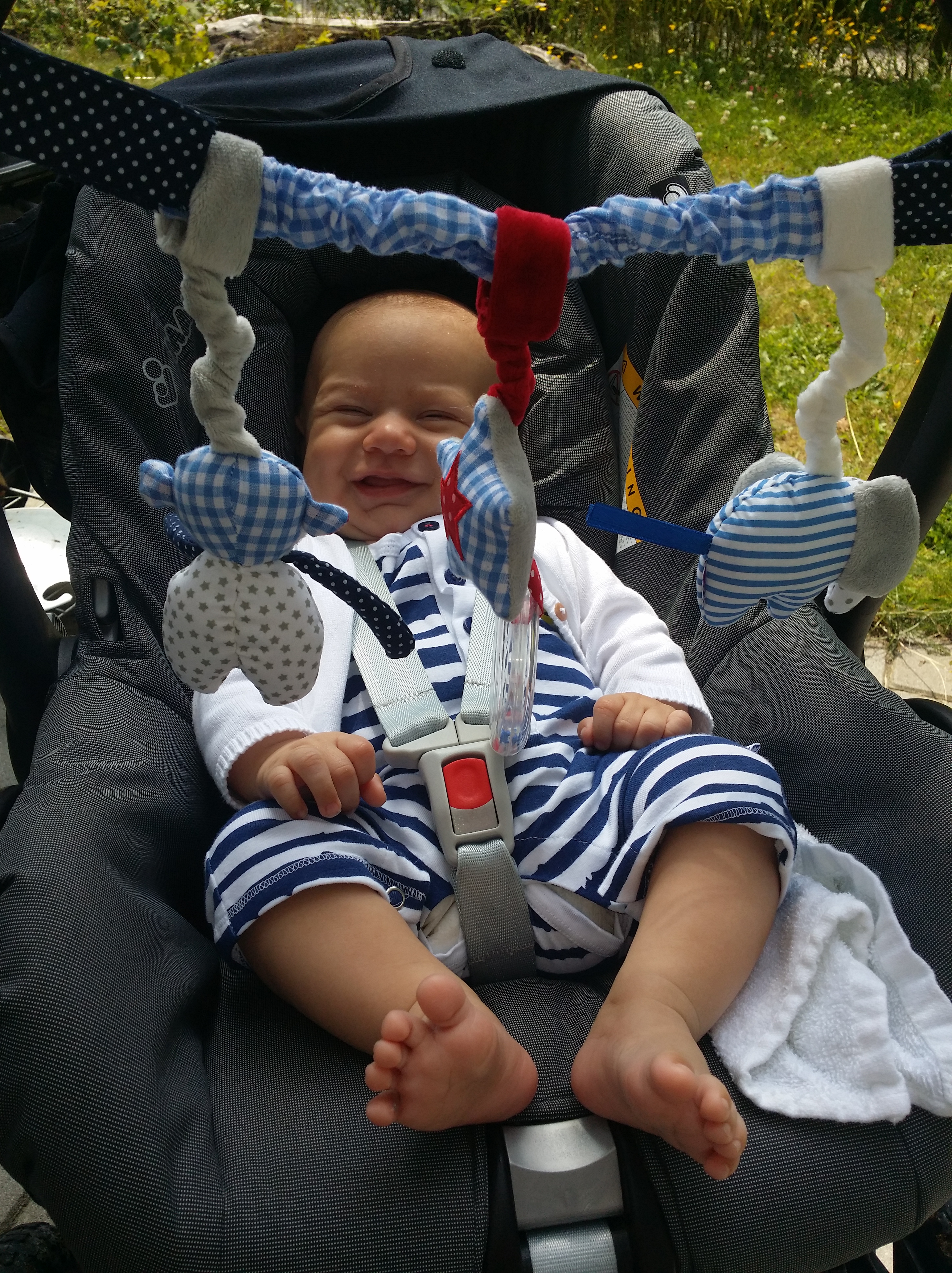 Ik kocht een nieuw speeltje voor aan de maxi cosi voor Sam en hij vind het geweldig!