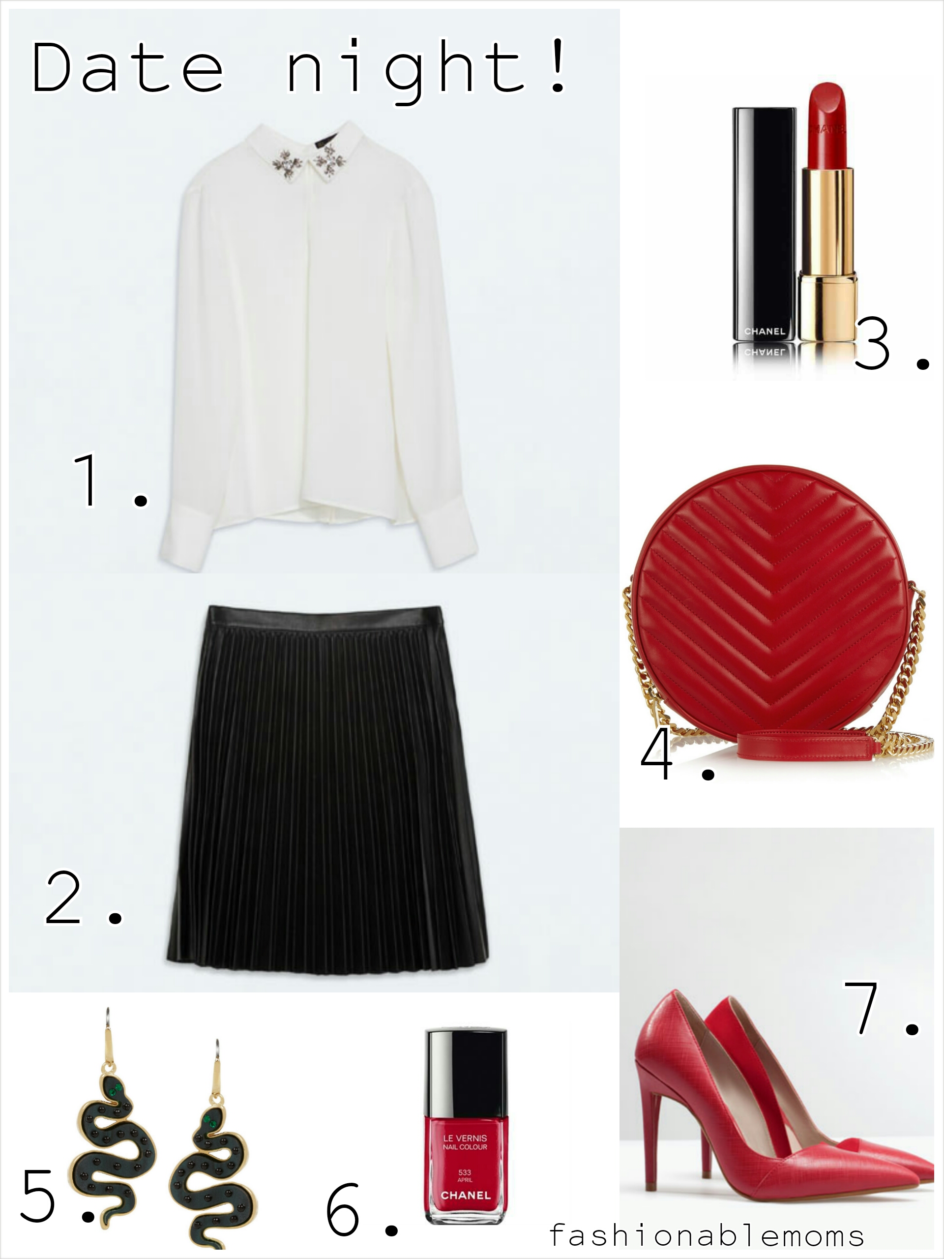 Weekend! Time for yourself and time to relax and go out.I gave made for you a very classic outfit. Beautiful black pleated skirt with a simple white blouse. Complete the outfit with red high heels from Zara and a red bag from Saint Laurant. Your nails and lips in Chanel and you’re ready to go!