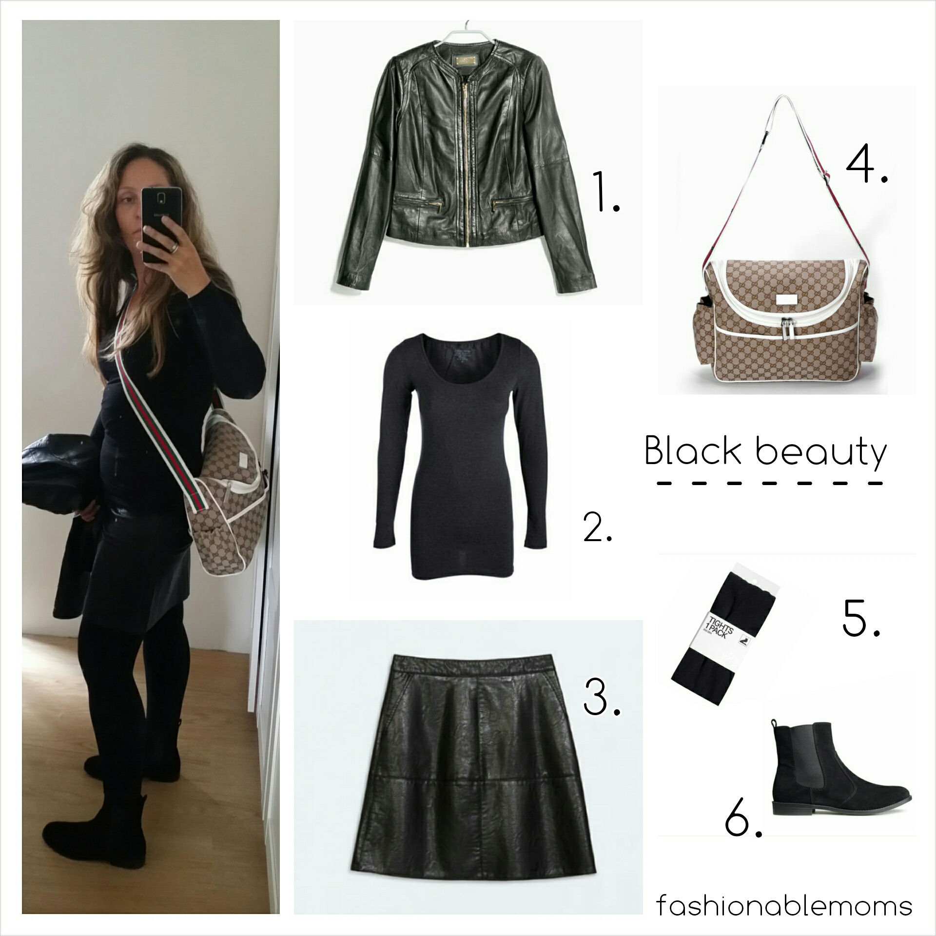 The other day I bought this new leather look skirt at Zara. Here I wear it in an all black outfit. The low booties are from H&M and very practical for me as a mommy. Of course I wear a basic shirt from one of my favorite labels for basic things, Pieces.