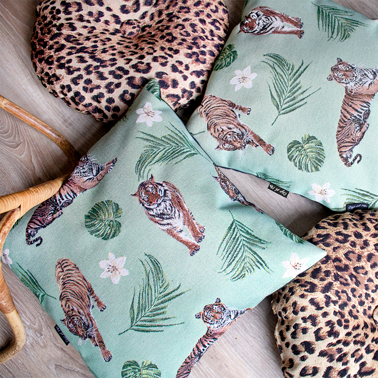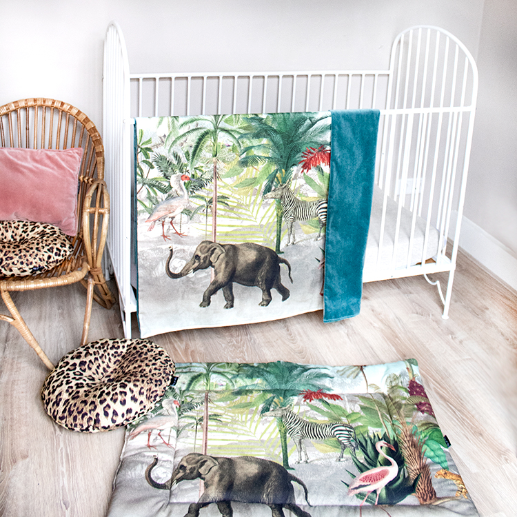 Ik zelf vind de jungle collectie het leukste. Deze bestaat uit box kleden, dekentjes en kussens in allerlei printjes en vormen.