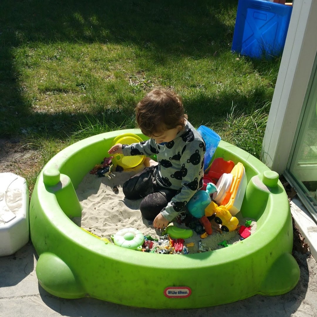 Op die leeftijd had ik ook een zandbak in de tuin en een kleine glijbaan, wij hadden een dino glijbaan waar hij ook onder kon zitten/verstoppen. Echt een leuk ding en ook niet duur. De zandbak van Little tikes is ook echt intensief gebruikt. Ook had Sam veel klein speelgoed. Grote voertuigen van Greentoys, stoepkrijt en belleblaas is ook altijd een succes. En natuurlijk een speelset voor mee naar het strand. En ook nog een aantal budget items, stoffenbal, zandvormpjes, klauwschep, bellenblaas loopwagen .